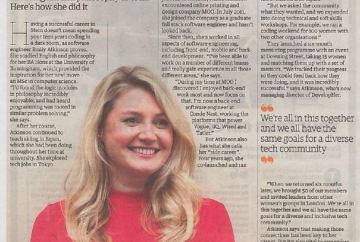 In the Guardian, Managing Director of DevelopHer, Emily Atkinson shares her story on how she made the switch from English and philosophy to tech. Having a successful career in Stem doesn’t mean spending your teen years coding in a dark room, as software engineer Emily Atkinson proves. She studied English and philosophy for her BA … Continue reading The Guardian – 2017